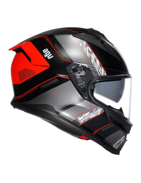 El diseño del K7, desarrollado en el túnel de viento, ofrece la máxima estabilidad a alta velocidad y es, por tanto, ideal para la conducción deportiva y touring. El nuevo mecanismo de la visera permite un accionamiento suave y fiable, con un perfil compacto y más EPS en la zona de la sien para una mejor protección. El K7 también incorpora el sistema de ventilación Air Diffusion Crownpad Technology, una tecnología patentada por AGV que proporciona el mayor nivel de distribución interna del aire jamás alcanzado en un casco. Gracias a un diseño combinado de forro interior y EPS, esta tecnología garantiza la máxima eficacia de ventilación. Cada detalle, desde la visera hasta el spoiler, se ha desarrollado con el objetivo de optimizar el flujo de aire en el interior del forro para garantizar un confort de conducción superior.