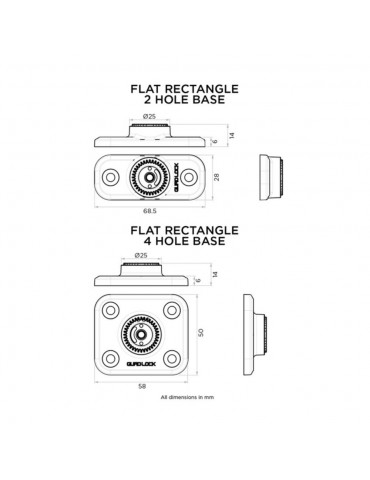 Base rectangular QUAD LOCK Cuatro agujeros - 360. Fije su soporte a superficies planas con una de nuestras bases rectangulares con agujeros planos.