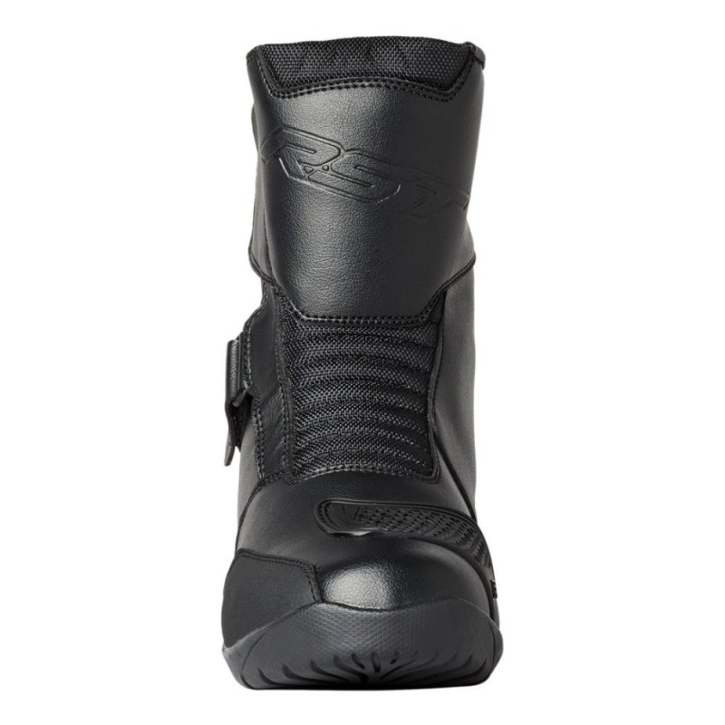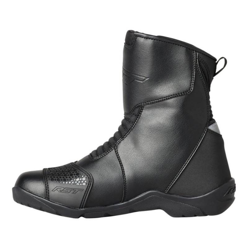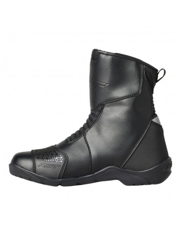Botas RST Axiom MID negro. Aunque sea nuestra bota básica de carretera, la versión de media altura de la Axiom original aún cuenta con características para la mejor protección del pie. Confeccionada con microfibras, la bota presenta una membrana SinAqua impermeable que mantiene el pie seco y transpirable. Además, la protección integrada para el tobillo y el talón, junto a su puntera reforzada, ofrecen una bota para motocicletas muy atractiva con certificación de la CE.