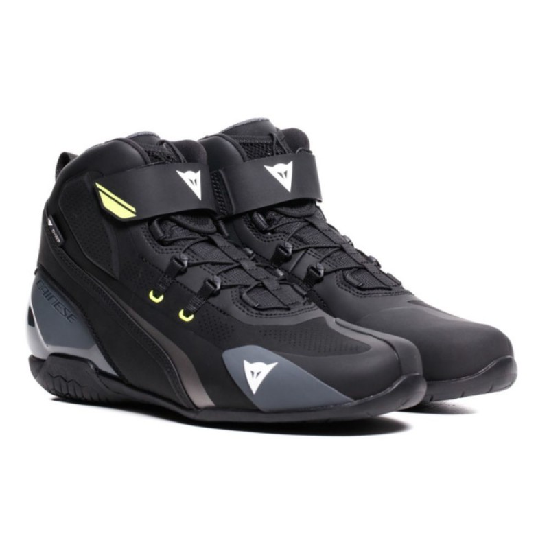 Botines DAINESE Herian D-WP negro / blanco / amarillo fluor. Todos los puntos fuertes de las zapatillas deportivas fusionados en un calzado técnico de moto que cumple con los estándares de protección típicos de Dainese. Los zapatos Herian D-WP combinan comodidad, modernidad y ligereza con tecnologías de vanguardia y protección de alto nivel. Al integrar una parte superior de microfibra y una membrana impermeable para proteger el pie en condiciones climáticas adversas, estos zapatos cuentan con refuerzos de espuma D en los maléolos, refuerzos protectores de plástico en el talón y refuerzos en la puntera. La suave plantilla OrthoLite® y la suela Groundtrax® garantizan la máxima caminata. y comodidad de conducción. El sistema Quicklace con compartimento para cordones en la lengüeta y el ajuste de velcro ajustable hacen que estos zapatos sean prácticos y funcionales, ideales para viajes urbanos y viajes cortos fuera de la ciudad.