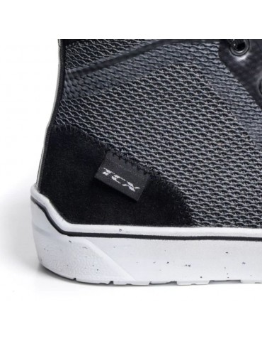 Zapatillas TCX Ikasu Lady Air negro / gris / blanco. Los zapatos de motocicleta certificados Ikasu Air son ideales para emplear en tiempos templados. Presentan exactamente el mismo estilo informal y comodidad que las zapatillas de deporte, lo que las hace perfectas para el uso diario. Los refuerzos con inserciones de D30® en el tobillo, la protección en la puntera y el talón y el protector de la palanca de goma garantizan la máxima protección, al tiempo que la plantilla OrthoLite® con amortiguación perdurable y enormemente transpirable hace que este calzado sea muy cómodo.