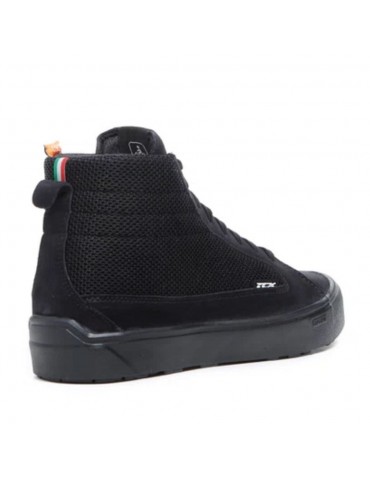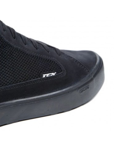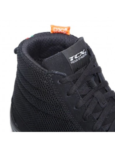 Zapatillas TCX Street 3 Air negro. Fabricadas en piel gamuzada y tejido mesh transpirable con forro impermeable T-Dry que sostiene los pies secos en todo instante. El cierre se efectúa a través de cordones mas tiene una banda flexible donde puedes guardar los lazos y así evitar que se enganchen en los estribos de la motocicleta. Las TCX Street 3 Air disponen de protecciones de nueva generación D3O en el maléolo aparte de otros protectores en la puntera y en el talón.