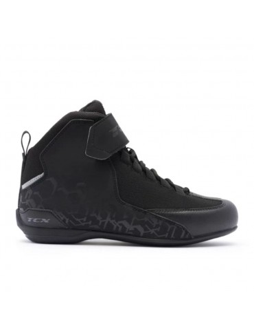 Botin TCX Shifter Sport Lady negro. Con un diseño de inspiración deportiva combinado con el alto nivel de protección de TCX, la Shifter Sport es una zapatilla de moto ligera y cómoda, ideal para desplazamientos urbanos o trayectos cortos. El empeine de microfibra suave y el sistema de cordones con banda de velcro facilitan un ajuste perfecto y personalizable. La suela Groundtrax®, de perfil bajo, aporta sensibilidad y precisión al conducir, mientras que la plantilla OrthoLite® otorga una amortiguación duradera a la zapatilla, favoreciendo la transpirabilidad, tanto al conducir como al caminar. Las Shifter Sport, versátiles y aerodinámicas, son las zapatillas ideales para los desplazamientos diarios en moto, gracias a su agarre firme al pedal y a su cómodo ajuste.
