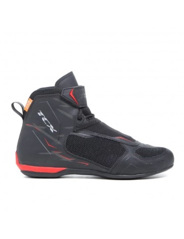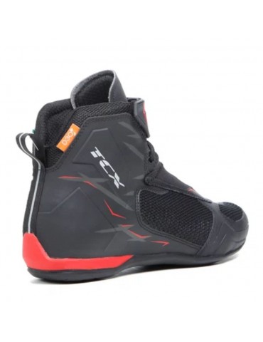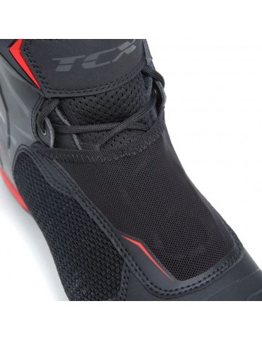 Zapatillas TCX R04D Air negro / rojo. Las zapatillas TCX R04D Air han sido concebidas para satisfacer las necesidades de los usuarios en trayectos cortos tanto urbanos como fuera de ciudad con una clara orientación deportiva. El empeine está confeccionado en malla para ser lo más ventiladas posible además de inserciones D3O en el tobillo y refuerzos en la puntera y el talón.