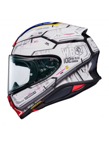 Casco SHOEI NXR 2 RX-78-02 Gundam TC10. Shoei evoluciona su triunfante casco integral deportivo y pertrecha al NXR 2 con los últimos avances en tecnología. Ofrece un alto desempeño aerodinámico, buena visibilidad, ventilación eficaz, un ajuste cómodo, un tamaño sólido y un peso ligero. El nuevo Shoei NXR 2 nace como el nuevo casco deportivo premium que reúne todas y cada una estas peculiaridades. Es el casco Shoei más ligero con el nuevo certificado de la regla ECE22/06 y resalta por ser exageradamente cómodo.