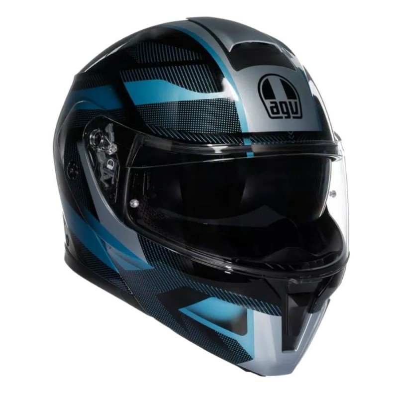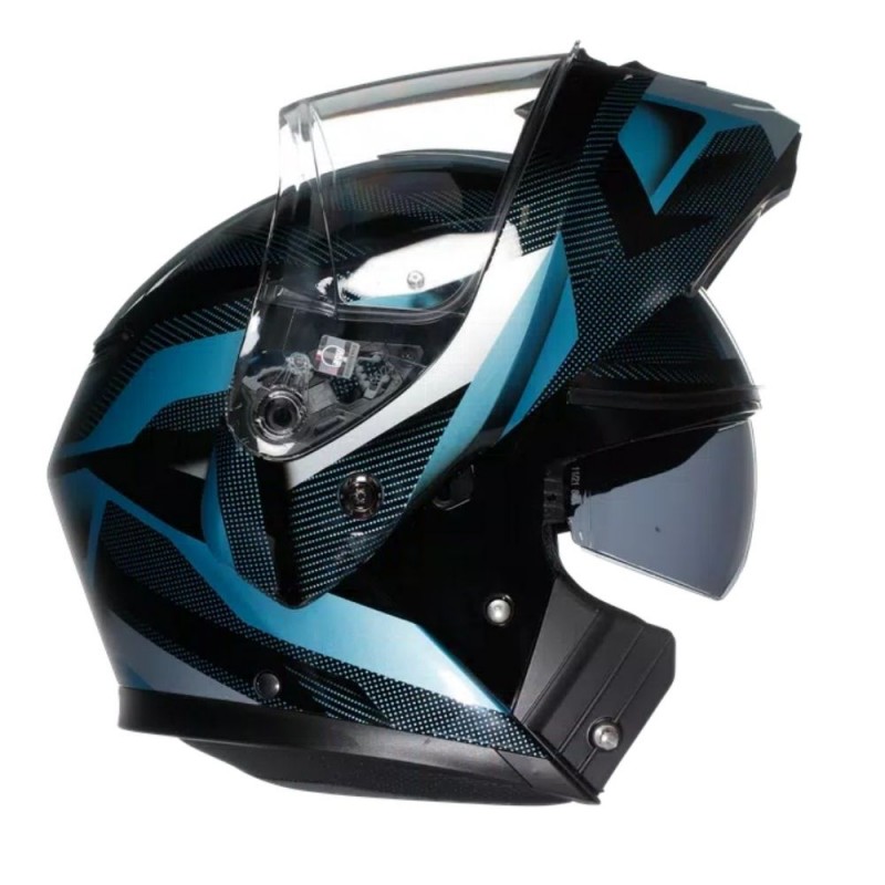 Casco AGV Streetmodular E2206 MPLK Ledro negro mate / powder azul. El Streetmodular es el casco modular de AGV diseñado para satisfacer todas las necesidades del motorista que utiliza la moto a diario en todos tipo de contextos, y que busca la facilidad de un casco abatible con características y protección superiores.