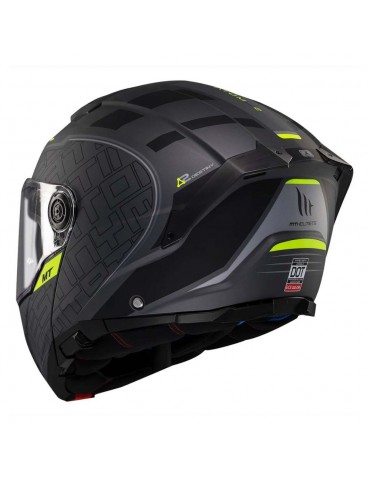 - DISEÑO: Al igual que en las últimas creaciones de MT Helmets, este casco cuenta con un campo de visión ampliado. Esto favorece tanto el confort de uso como la seguridad en marcha.
