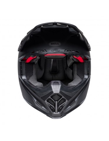 Casco BELL Moto-9S Flex Solid negro mate. El rival a batir Desde los profesionales hasta los particulares, nuestro compromiso con este deporte está muy arraigado al Moto-9S Flex. Equipado con el nivel profesional de protección, seguridad y tecnología por el que Bell es conocida, el Moto-9S Flex es lo que todo piloto necesita para mantenerse a la cabeza de sus rivales. Diseñado con el piloto en mente y con el podio a la vista, el Moto-9S Flex cuenta con una protección lista para la carrera gracias a nuestra tecnología patentada Flex: Un revestimiento contra el impacto de tres capas, hecho de materiales de densidad diferente, para dispersar la energía derivada del impacto de forma más completa y reducir la transferencia de energía rotacional. El forro flexible y segmentado permite un ajuste adaptativo y personalizado para una mayor variedad de contornos de cabeza, lo cual hace posible ofrecer una ventilación mejor en todo el casco.