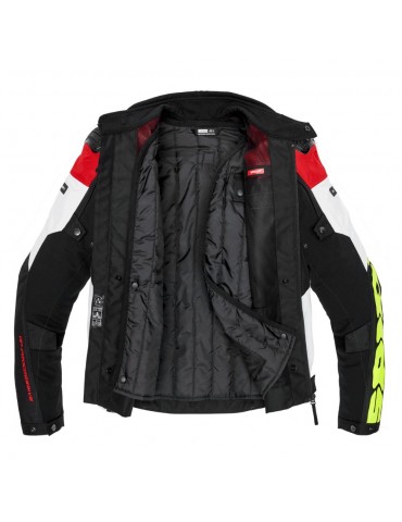 Chaqueta SPIDI Progressive Tex blanco / rojo. La SPIDI Progressive Tex es la chaqueta de moto de corte deportivo que se puede utilizar en diferentes estaciones, ideal para recorridos de media distancia. Certificada EN 17092-4:2020 en Clase AA, incluye un forro térmico desmontable de 100 gr/m² y la opción de montar cualquier accesorio Step-In Wear, como el forro impermeable H2Out, por ejemplo.