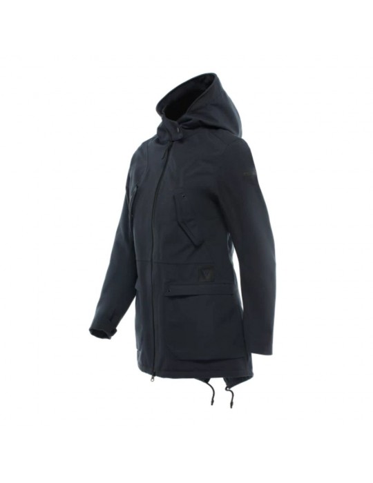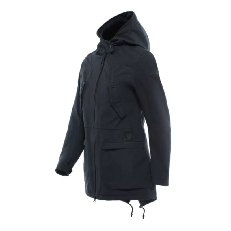 Chaqueta DAINESE Darsena Absoluteshell™ Pro Parka Lady negro. Diseñada para los desplazamientos urbanos durante todo el año, Darsena combina un estilo a la moda con materiales de calidad, sin descuidar las soluciones tecnológicas más avanzadas. Entre ellas, la membrana impermeable laminada Absoluteshell™ Pro, que facilita el secado rápido de la prenda y protege frente a los climas más duros, y la capa térmica extraíble de guata, que puede utilizarse por separado si es necesario y permite usar la prenda en cualquier condición meteorológica.