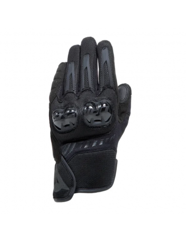 Guantes DAINESE MIG 3 Air Tex negro / negro. Guantes cortos de verano de look agresivo confeccionados en tejido de malla ventilada. Incorporan protecciones de TPU en los nudillos para máxima protección. Destacan por ser muy confortables, ligeros, resistentes y ventilados.