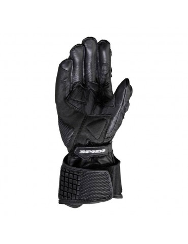 Guantes SPIDI Carbo 5 negro. Guantes de cuero de carreras desarrollados para carreras de alto rendimiento y conducción deportiva. Característica acolchado de carbono, protector de nudillos, correa de seguridad para la muñeca, sistema de sujeción triple, insertos de microfibra Clarino, refuerzo Keramide y lado multicapa especial del dedo pequeño para aumentar la resistencia en caso de deslizamiento duro.