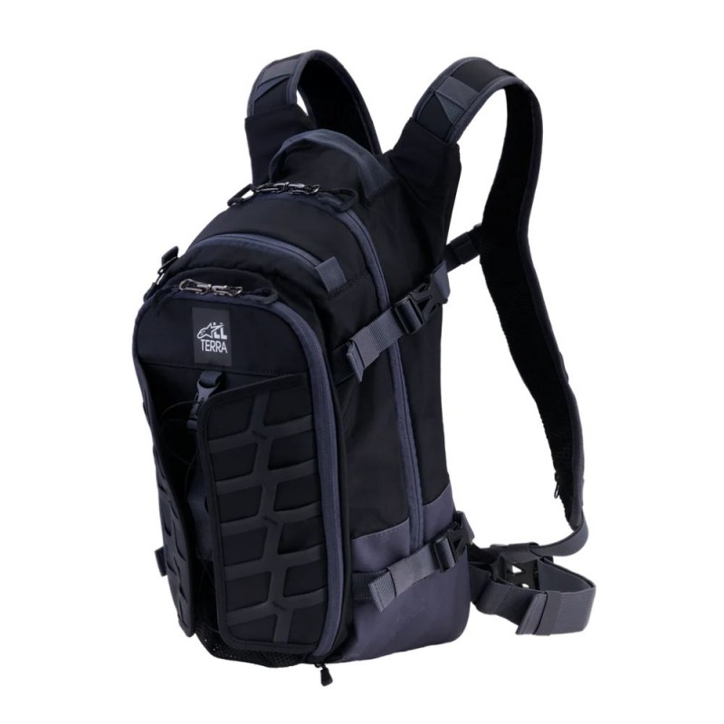 Rucksack ALPINESTARS AT-15 schwarz / grau. Der AT-15 wurde für anspruchsvolle Motorrad-Abenteuerfahrer entwickelt und bietet ein 15-Liter-Volumen, das dank eines intelligenten modularen Aufbewahrungssystems auf 18 Liter erweiterbar ist. Gefertigt aus robustem 900D-Gewebe mit einem strukturierten und ergonomischen Rückenteil, gewährleistet er Stabilität und Komfort in unwegsamem Gelände. Er ist mit Trinksystemen kompatibel und verfügt über ein separates Fach für Tech-Air®-Ersatzkartuschen. Außerdem ist er mit einer Regenhülle, einem MOLLE-System für Zubehör und einem mehrfach verstellbaren Brustgurtsystem mit Magnetverschluss ausgestattet.