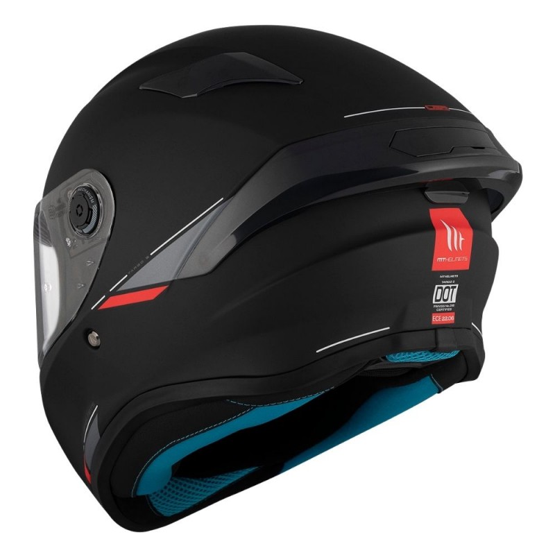 - Casco compatible con los sistemas antivaho Pinlock y Fog-Off, un producto desarrollado por MT que mejora los niveles de resistencia al empañamiento.