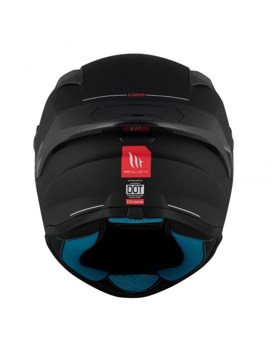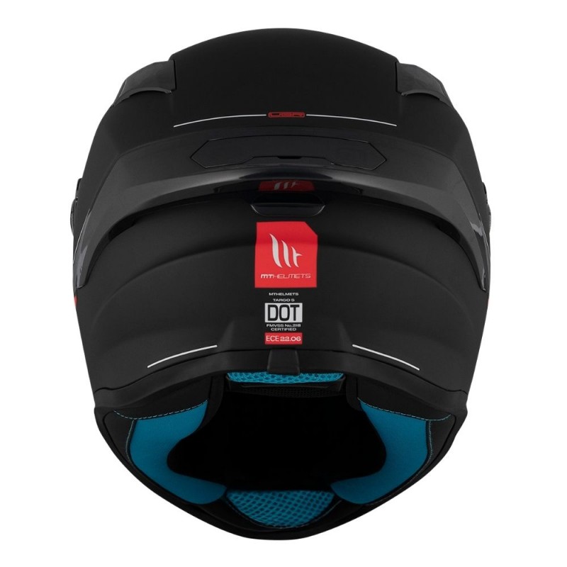 Casco MT FF106B Targo S Solid A1 negro mate. El nuevo MT Targo S es la evolución natural del modelo Targo Pro, al que sucede para continuar con el éxito de MT en este segmento. El Targo S cuenta con la certificación 22.06 y no sólo presenta una nueva forma, interiores de vanguardia y el revolucionario sistema de visera MT-QVSS, sino que también incluye alojamiento para sistemas universales UCS Bluetooth.