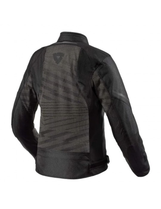 Chaqueta REVIT Torque 2 H2O Ladies negro / antracita. La Torque 2 H2O Lady es la evolución de la chaqueta de mujer Torque Lady más vendida de Revit®. Una chaqueta de verano ligera y cómoda con membrana impermeable y extraíble Hydratex® G-Liner, para amoldarse a las condiciones climáticas. Tiene paneles de malla Jacquard en el pecho, la espalda y las mangas para una ventilación conveniente. Incorpora protectores homologados en hombros y codos con certificación CE nivel 1 y predisposición para montar protector de espalda (no incluido).