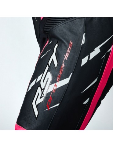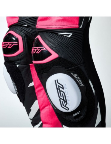 Suit RST PRO Series EVO Airbag neon pink / white. The Pro Series Evo is the natural evolution of the 2021 Pro Series Suit and is a perfect option for track riding. The Pro Series Evo features a less aggressive cut than the V4.1. AAA certified, the Pro Series Evo uses stretch panels that allow for safe deployment of In&Motion's new essential airbag system. It includes a removable liner and comes complete with a range of striking colors that will turn heads.