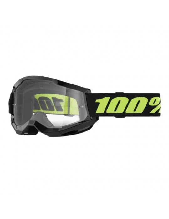 Goggles 100% Strata 2 Solar Eclipse / clear. From trail to track, the Strata 2 offers an almost unlimited field of vision for our top athletes and comfort for the everyday rider.