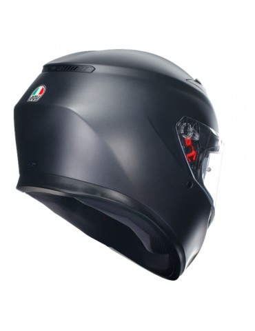 Helmet AGV K3 E2206 MPLK black matt. The ultimate track helmet gets even better, with an included hydration system, MotoGP-developed metal air intakes and a wind tunnel-tested bi-flat spoiler with multiple wings to maximize aerodynamic performance and add stability at high speeds. The 100-percent carbon fiber shell shape has been developed to minimize interference with the racing suit, while the interior features a form-fitting, seamless fit in sensitive areas.