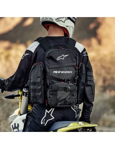 Backpack ALPINESTARS Techdura Tactical black / white. The Techdura Tactical Pack provides off-road and enduro riders with superior modularity, giving them the ability to carry as much or as little during the ride. The Techdura Tactical Backpack is an overall low-profile solution for comfortably carrying off-road trail essentials. Constructed of rugged 1000D polyester fabric, 450D coated polyester fabric and comfortable 3D mesh, the ergonomic Techdura tactical backpack provides ample carrying capacity thanks to a 5.5 to 6 liter fixed main back compartment and lower chest and lower side pouches that offer. Volume capacity of 75 liters each, for a total of up to 9 liters of total carrying capacity. The front and side bags can be removed if desired, allowing the backpack to have an even lower profile, allowing the rider to carry only the essentials.