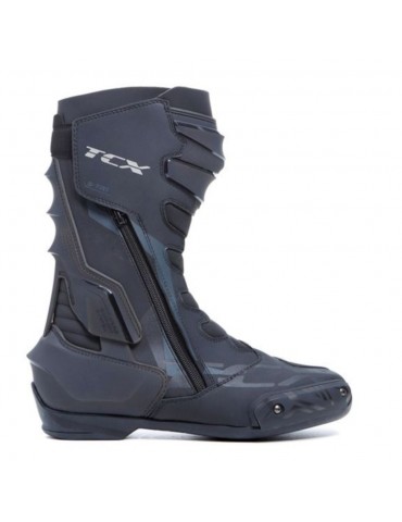 Boots TCX S-TR1 black. S-TR1 is a sports boot designed to protect the foot, the joint and the tibia, for a perfect balance between safety and comfort. Protection is guaranteed by the presence of a rigid TPU front shield, which works in synergy with the soft padding underneath. Joint movement is controlled by the T.C.S. Torsion Control System, a joint designed to accompany the ankle in its optimal range of action, to avoid torsion, hyperextension and hyperflexion. The Groundtrax® sole with a rubber sheet that has been designed to guarantee perfect grip on the bike's controls and on the asphalt.