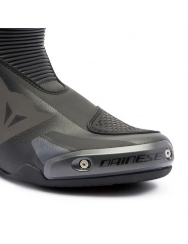 Its iconic design is combined with cutting-edge technological solutions, such as the Axial Distortion Control System in Kevlar carbon, the IN construction with Velcro for easy connection with Dainese racing suits, the replaceable magnesium sliders and the Groundtrax® racing sole oriented to grip and heat resistance.