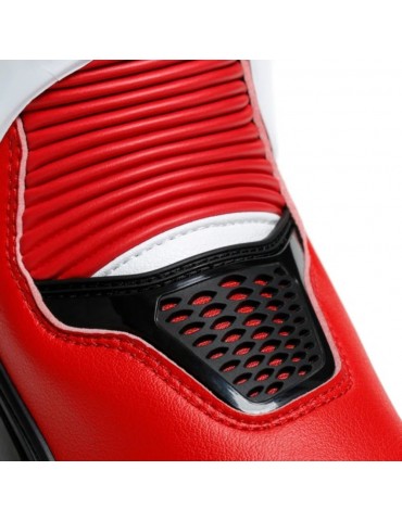 Boots DAINESE Torque 3 Out black / white / lava-red. This racing boot is made of microfiber and D-Stone™ fabric with high-grip TPU inserts. Comfort and safety are guaranteed by replaceable magnesium sliders, protective nylon in the shell, heel and toe and the exclusive TPU D-Axial system that prevents foot torsion.