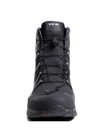 Booties TCX Speedtrek Gore-Tex® black / black. Certified motorcycle booties with Gore-Tex Extended EpE® technology, Groundtrax® high sole for stability and Zplate® insert. An ideal combination of protection and comfort, it is the shoe for daily commuting, both on motorcycle and on foot, in all weather conditions.