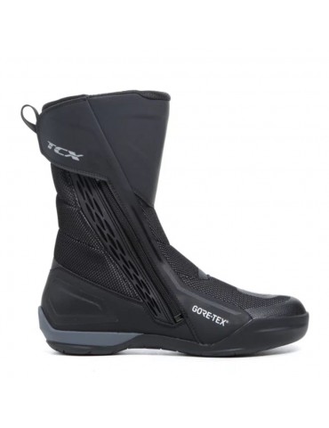 Boots TCX Airtech 3 GTX black. Airtech is TCX's solution to keep your feet comfortable while riding your motorcycle. The TCX *Airtech 3 GTX* sport motorcycle boot features a microfiber upper and a waterproof, breathable GORE-TEX membrane. Plus, the anatomically shaped Ortholite footbed makes a big difference when it comes to comfort with the *Airtech 3*, both in the saddle and when you're out for a ride.