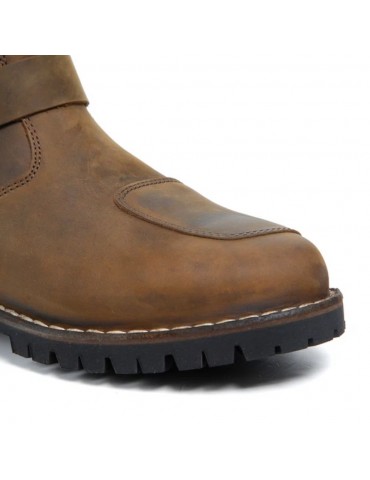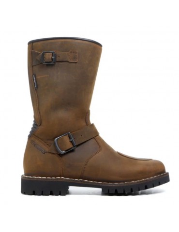 Boots TCX Fuel WP brown. If you have a traditional taste, TCX Fuel waterproof boots will probably stoke your fire. Engineer boots were originally designed to have a single piece of leather in the forefoot with minimal exposed stitching to shelter the engineer's feet from unruly embers. In constructing Fuel Boots, TCX recognized that this still valid design has a different utility for the modern motorcyclist: the beautifully finished full grain leather upper is backed with a full waterproof lining to repel any genre of weather, water or dirt. the road throws at you. TCX Fuel boots are loaded with all the modern motorcycle niceties, like reinforced leather shift pads, medial and lateral malleolus discs, toe and heel and a lugged sole. With a pair of TCX Fuel WP boots in your closet, you'll want to load up on fuel before every ride.
