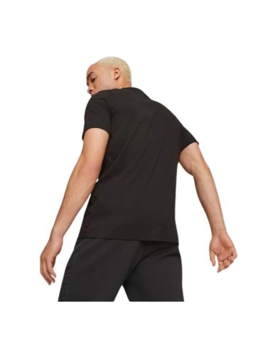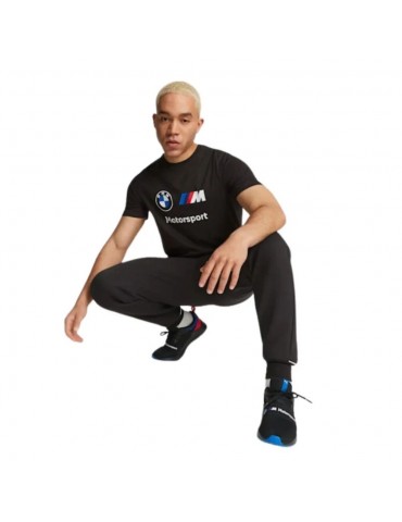 T-Shirt PUMA BMW MMS ESS Logo black. A T-shirt de ajuste regular para homem é apresentada em cores sazonais e celebra a potência e a agilidade da BMW.