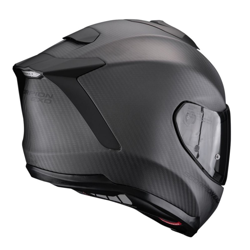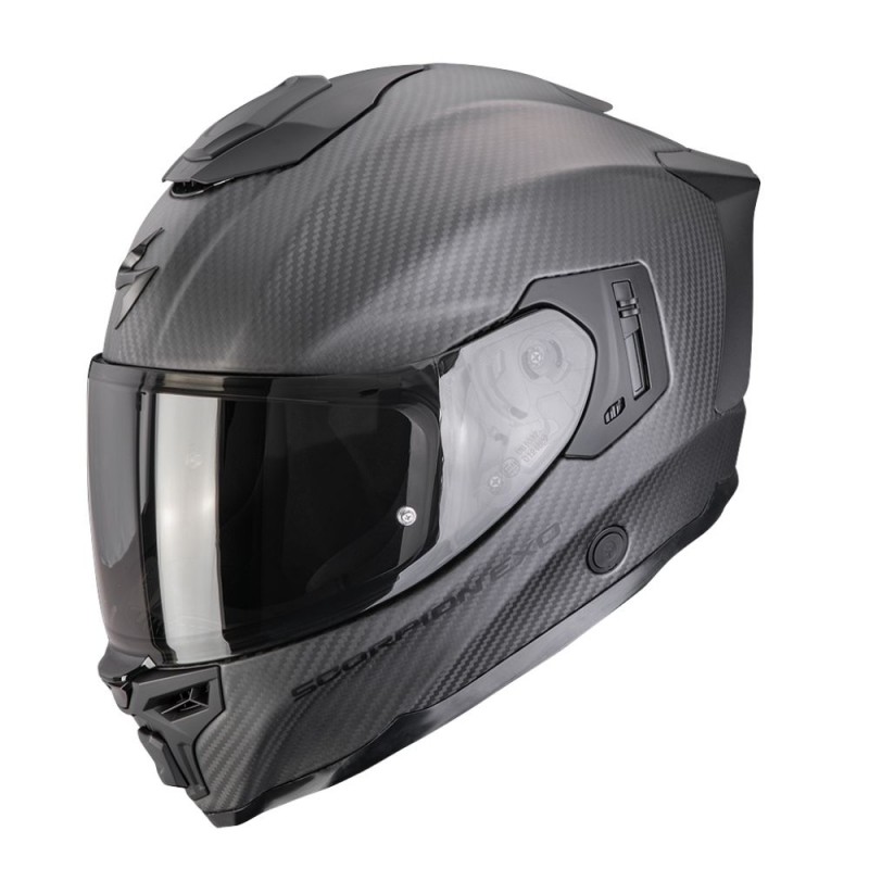 Helmet SCORPION EXO-1500 Carbon Air Solid matte black. The Scorpion EXO-1500 Carbon Air is the evolution of the premium touring helmet. Designed to offer maximum aerodynamic stability, acoustic comfort, and lightness, it combines advanced technology with a high-quality finish. Its Ultra TCT Carbon shell absorbs impacts progressively, while the AIRFIT® system allows for a personalized fit to the rider's face.