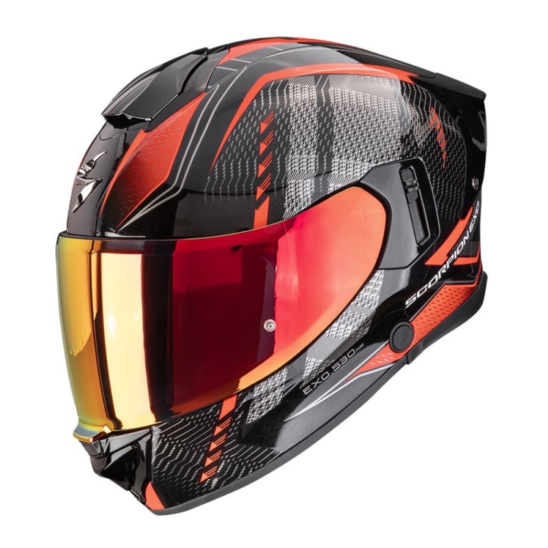 Helmet SCORPION EXO-530 Air Theras metallic black / red. Full-face Sport-Touring helmet made of advanced polycarbonate and ECE 22.06 certified, offering a perfect balance between aerodynamics, comfort, and performance for any type of riding.