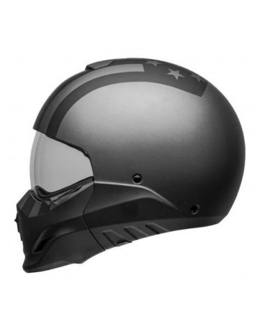 Helmet BELL Broozer Freeride gray matte / black. Broozer is the new helmet that Bell introduces in the 2020 range and is characterized by its aggressive style and the functionality and comfort it offers to the rider. With a revolutionary concept, the Bell Broozer is the first helmet in its category to have the double P/J homologation to be worn as a full-face helmet or as a jet helmet, thanks to the removable chin guard. An explosive combination of attitude, style and functionality that makes the Bell Broozer a true streetfighter helmet.