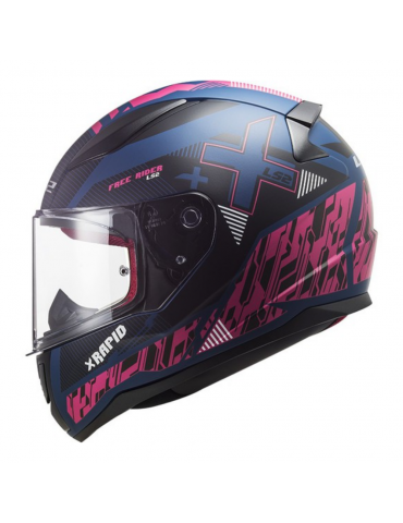 Helmet LS2 FF353 Rapid Xtreet matt blue / purple. The new Rapid interprets the essential compromise between high level protection and easy design. This new helmet of the LS2 range is molded in HPTT, an ABS blend that offers a fully safe structure with a very light weight, 3 shells, breath deflector, class A cap and quick release system.