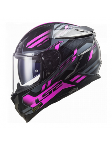 Helmet LS2 FF327 Challenger Spin black / titanium / pink fluor. It is a sport-touring full face helmet with a sporty design. Its outer shell is made of a 3-fiber composite (HPFC) and has the latest technological advances of the brand derived from MotoGP. It has a screen with pinlock predisposition (included) and integrated sun visor. It incorporates an emergency extraction system.