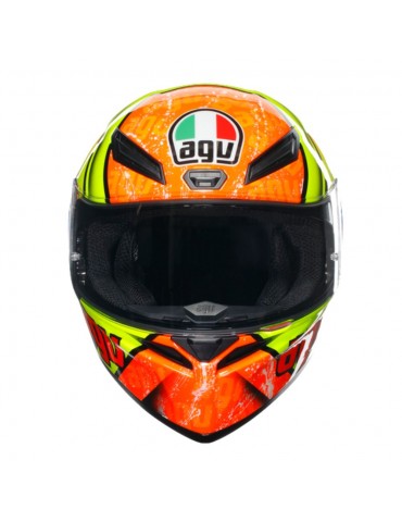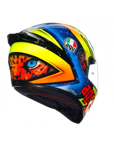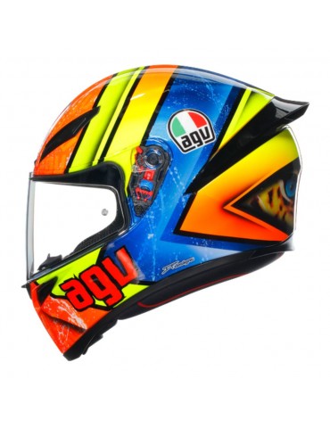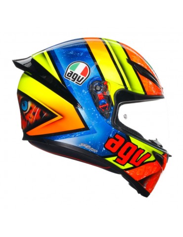 Helmet AGV K1 S E2206 Izan. The aerodynamic shape, front vents developed for competition and wind tunnel tested spoiler maximize the possibilities and give stability at high speeds. The panoramic anti-scratch cap offers a wider field of vision, both laterally and vertically, for total environmental control. With soft, removable Dry-Comfort interiors, comfort is assured.