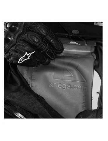 Backpack KRIEGA R30 Backpack. Awarded as the best 100% waterproof backpack, the Kriega Backpack R30 contributes several technical resolutions that will make the bikers' delicacies along their journey. It has a total capacity of 30 liters and the opportunity to increase its capacity by 5 to 10 liters more by means of the optional US-5 or US 10 bags. The Kriega Backpack R30 is made of top quality materials to be very resistant to the passage of time. The buckles are made of 6061-T6 aluminum for light weight and durability. The inner cover can be easily removed for washing or replacement if necessary.