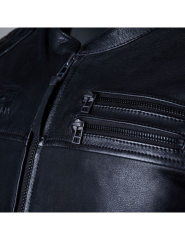 Jacket RST Hillberry2 Leather black. The Hillberry 2 jacket is constructed from cowhide leather to provide the necessary level of abrasion resistance. CE Level 1 Shoulder protectors are included, and the jacket is prepared for N/A protectors. This jacket is suitable for mid-season wear, and is equipped with a Fixed inner liner.