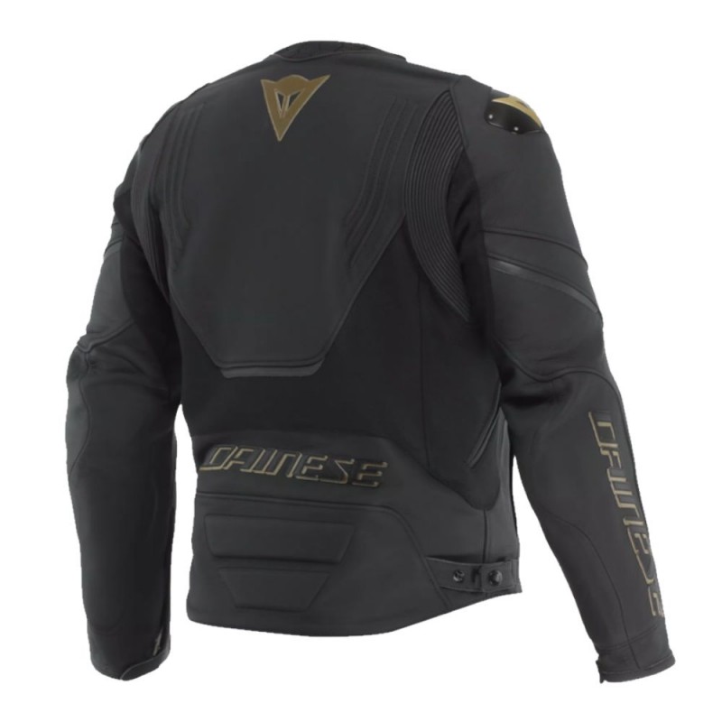 Jacket DAINESE Racing 5 black / gold. Designed for all motorcyclists who ride in spring and summer, the Racing 5 Leather Jacket is a regular-fit, sporty motorcycle jacket crafted from fine 1.2mm Tutu bovine leather.
