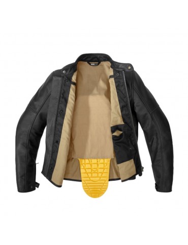 Jacket SPIDI Mack black. It is the 4-season motorcycle leather jacket we designed to ride touring, naked and cruiser motorcycles in total comfort. The buffalo leather used in this jacket has a thickness of 1.0 / 1.1 mm: this gives the garment a comfortable fit while maintaining great durability and strength. Mack has obtained EN 17092-2: 2020 Class AA certification and includes removable Warrior Lite protectors, certified to EN1621-1: 2012, on shoulders and elbows. The back pocket can accommodate Warrior series back protectors (level 1 or 2).