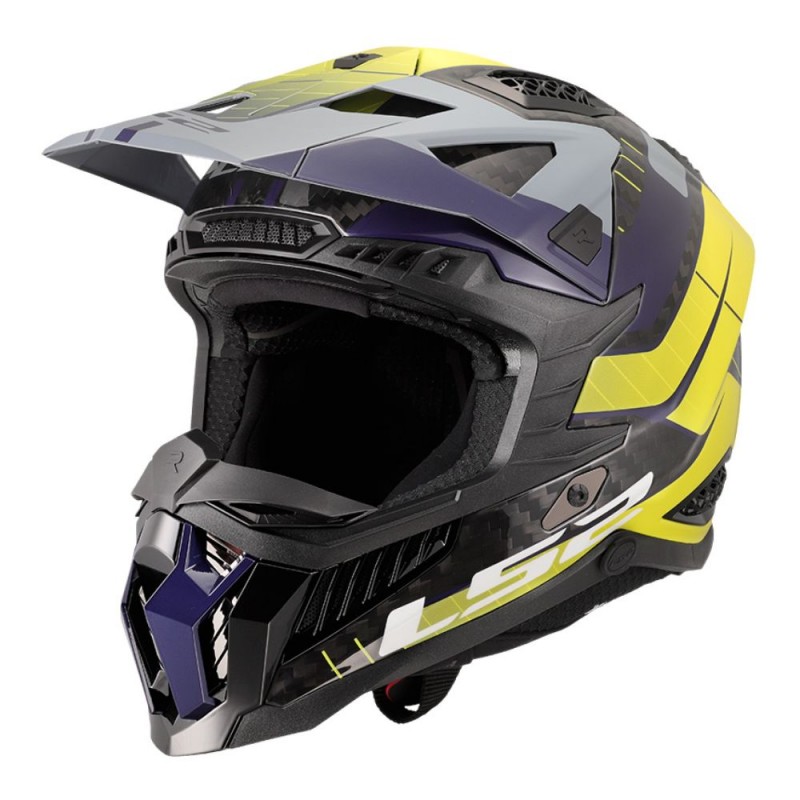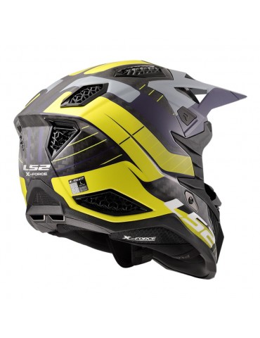 Helmet LS2 MX703 C X-Force Galuo gray / h-v yellow. Offroad helmet with an aggressive design to enjoy all types of roads. Ultralight and safe thanks to its carbon fiber shell and double buckle closure. Possibility of placing the hydration kit inside the helmet. Combine it with our range of LS2 goggles.