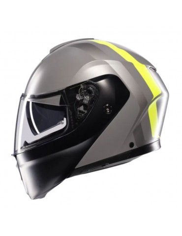 Helmet AGV Streetmodular E2206 MPLK Resia gray / black / fluor yellow. The Streetmodular is AGV's modular helmet designed to meet all the needs of the motorcyclist who uses the motorcycle on a daily basis in all types of contexts, and who is looking for the ease of a flip-up helmet with superior features and protection.