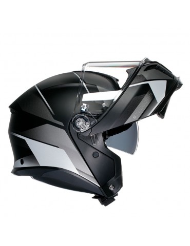 Helmet AGV Tourmodular E2206 Multi MPLK Perception matte black / silver. The ultra-protective, comfortable and lightweight modular helmet with integrated DMC communication system.