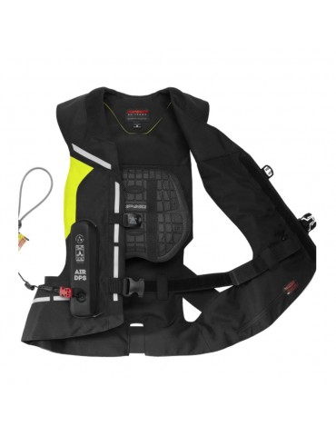Vest SPIDI Air DPS yellow fluor. It is a protection system that wraps around the rider's torso and neck, thus increasing the level of safety in the most sensitive areas of the body. This system is designed to reduce the most abrupt neck movements, thus avoiding serious injuries and highly increasing the tendency of the body to roll, thus reducing possible more damaging twists.