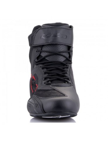 Bootie ALPINESTARS Faster-3 Rideknit black / dark gray / glossy red. The Faster-3 shoe is constructed with a durable, lightweight microfiber chassis and a mesh lining for comfort, resulting in an aggressively styled running shoe that offers performance, precision, flexibility and structural integrity.