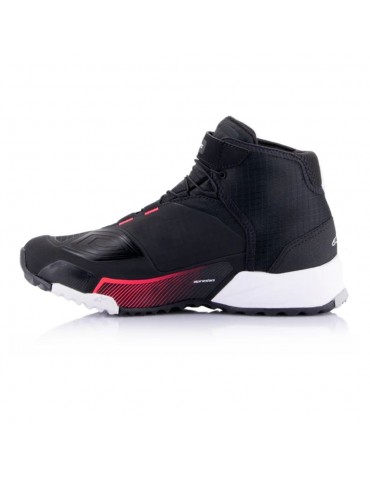 Booties ALPINESTARS CR-X Lady Drystar Riding black / white / diva pink. The CR-X Drystar® for women provides everyday comfort, both on and off the bike, and excellent grip on all types of terrain. Made with an advanced ripstop upper structure with seamless PU reinforcements, plus a comfortable and protective EVA midsole with Alpinestars' TPF Transversal Protection Frame technology, they are the perfect choice for female riders who live and ride in wet climates.