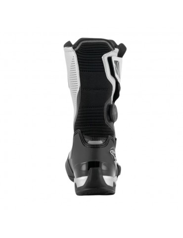 Boots ALPINESTARS SP-X Boa black / silver. SP-X BOA boots are stylish sport boots designed to fit under technical riding pants and provide superior walking ability. Optimized for the sport and sport rider, the SP-X BOA boots are compact mid-height boots with superior levels of protection and comfort on and off the bike. The upper is constructed with a combination of advanced microfiber, ultra-soft Rideknit® material and woven mesh, plus seamless heat-welded parts. The lower part features a TPU heel, toe slider and Alpinestars TPF cross protection frame in the sole, allowing for high levels of protection against impact and any bending or twisting. In addition, the sole also features a completely new design with an asymmetrical rear heel to facilitate the rider's natural stride and promote stability off the bike.