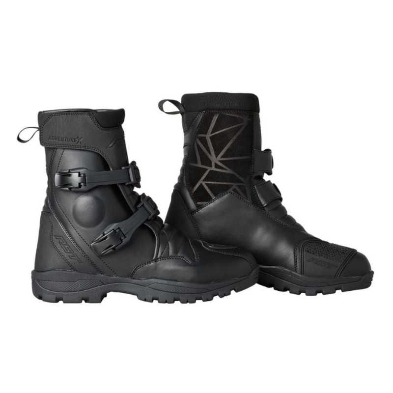 Boots RST Adv-X MID black. The mid-height version of the original Adventure-X boot. Equipped with a large double buckle closure system, the Adventure-X Mid is easy to put on and take off, while staying securely in place with additional Velcro closures.