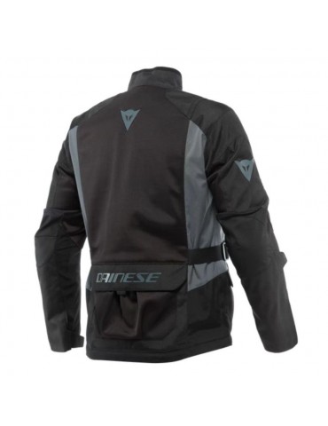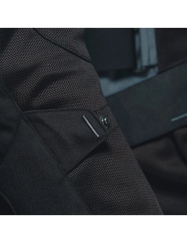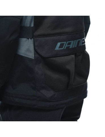 Jacket DAINESE Desert Tex black / black / ebony. Desert Tex Dainese is a summer adventure touring motorcycle jacket for both on-road and off-road travel, developed with a lightweight and durable Poly600 fabric construction, with front and rear panels in Omega Mesh wide mesh, to offer excellent ventilation once the windproof inner liner is removed and can be stored in the rear cargo pocket. Protection in case of impact is ensured by EN 1621.1 Level 2 and Type B certified Pro-Armor soft protectors on shoulders and elbows, to which is added the pocket for the G1 and G2 back protector and the Double Chest protector, while the wide possibility of adjustment modulation is a merit of the adjustments on the collar, waist, sleeves and cuffs. Ideal for long motorcycle rides in warm climates, going from on-road to off-road, the Desert Tex jacket is a perfect blend of versatility, comfort and functionality. It is equipped with a jacket-pant attachment system and numerous pockets - four on the front, one on the back and one on the inside - to store small items that you can always have at hand during the trip.